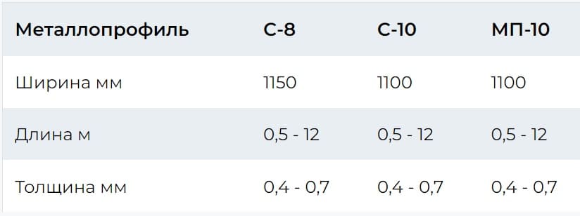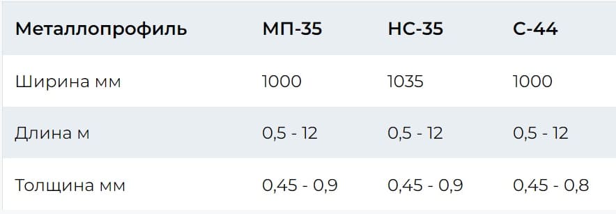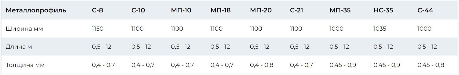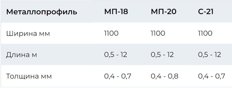 Виды металлопрофиля