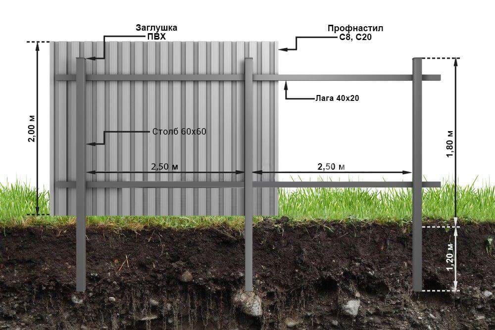 Забор из металлопрофиля 2 м